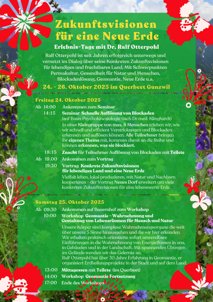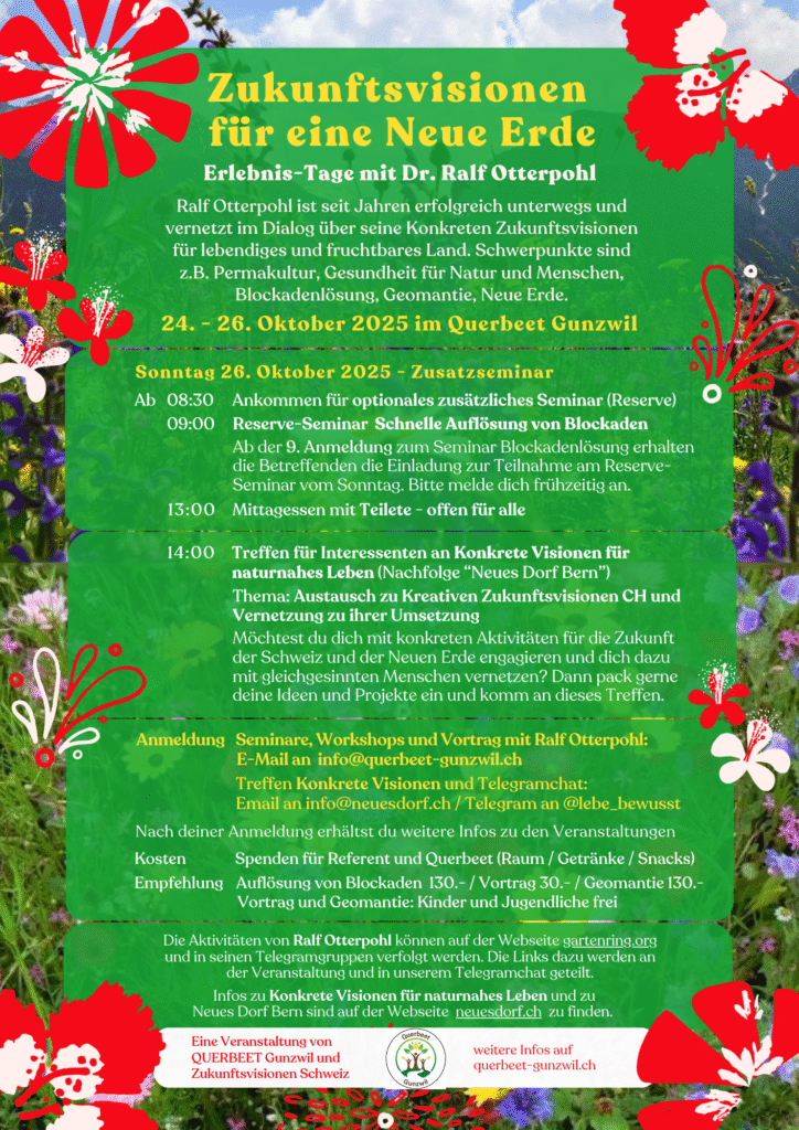 Im September ist Ralf Otterpohl ist am September 2023 auf Schweiz-Tour. Am Samstag, 16. September organisieren wir eine permakulturelle Landbegehung mit ihm. Melde dich gleich an!
